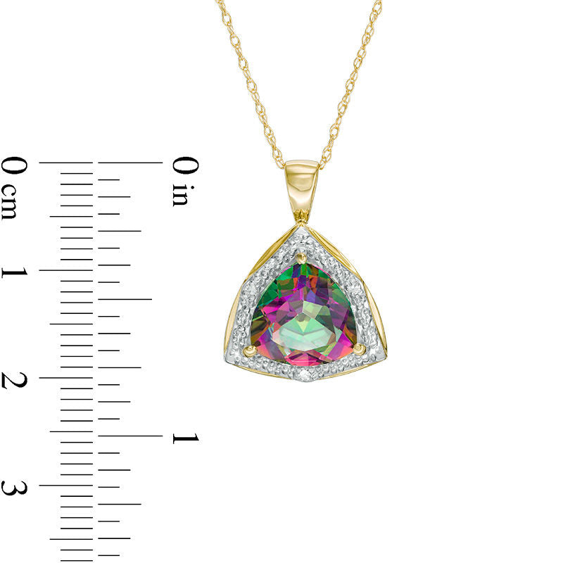 10.0mm Trillion-Cut Mystic Fire« Topaz and Natural Diamond Accent Frame Pendant in 10K Yellow Gold