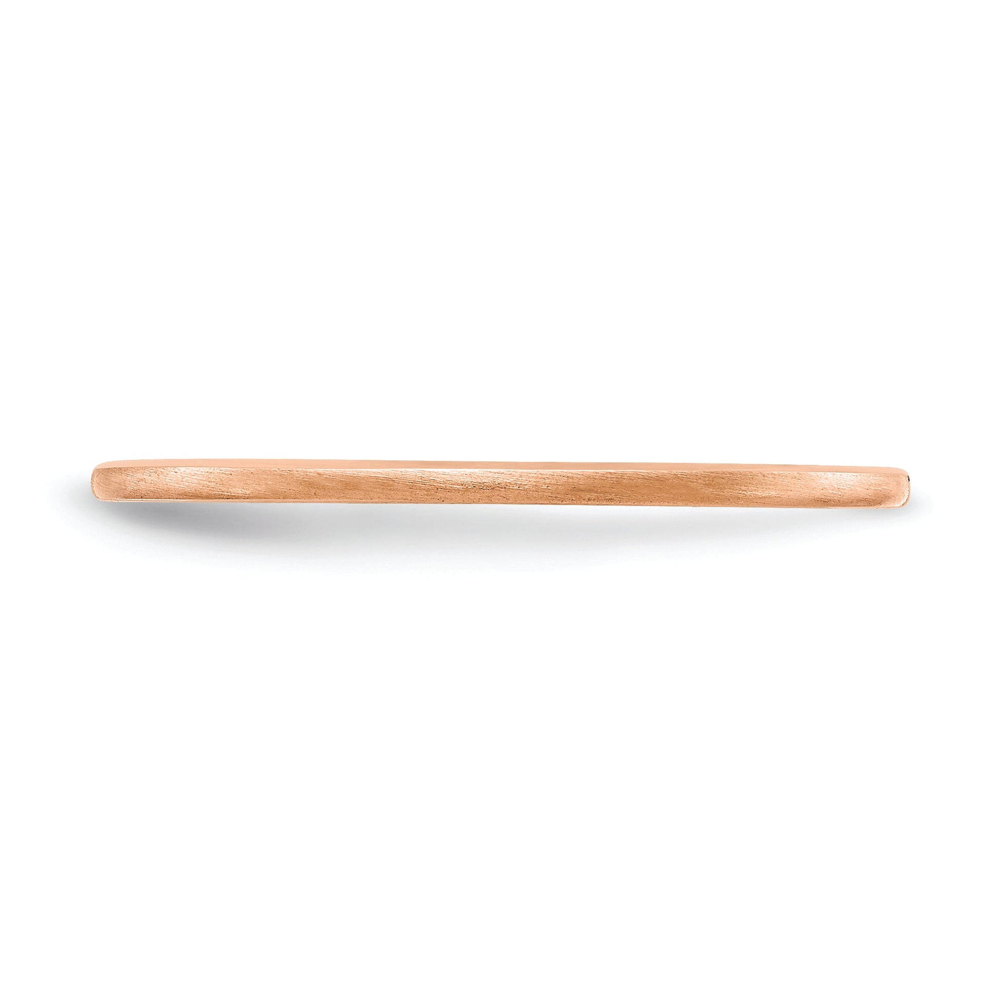 Introducing the 10K Rose Gold 1.2mm Half Round Satin Stackable Band, your new must-have for any jewelry collection. Crafted from solid 10K rose gold, this ring offers a brushed finish that adds a sophisticated touch to its simple design. Its 1.2mm width makes it perfect for stacking, allowing you to mix and match with other rings for a personalized style. The ring's standard fit ensures comfort, and it is easily sizable within a range of 7 to 7.25. Delight in the timeless elegance of this stackable beauty today!