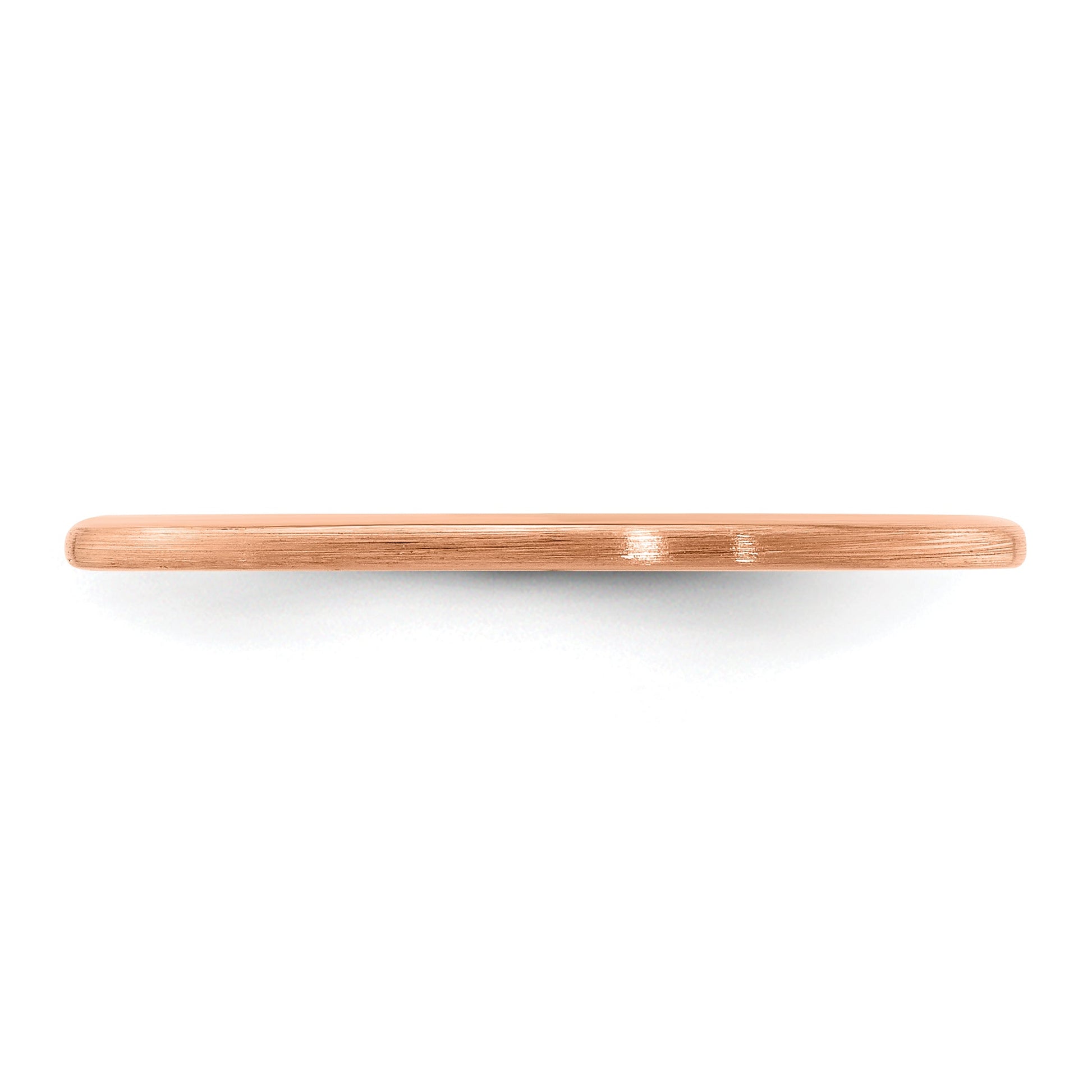 Introducing the 10K Rose Gold 1.2mm Half Round Satin Stackable Band, a stunning addition to any jewelry collection. Crafted with 10K purity rose gold, this ring features a brushed finish that exudes elegance. Its sleek, 1.2mm band width makes it perfect for stacking, allowing you to create a personalized look. The ring is available in a size 9, with easy sizing adjustments up to 9.25. Its solid structure ensures durability, while its standard fit provides comfort. Upgrade your style with this must-have 10K Rose Gold 1.2mm Half Round Satin Stackable Band today.