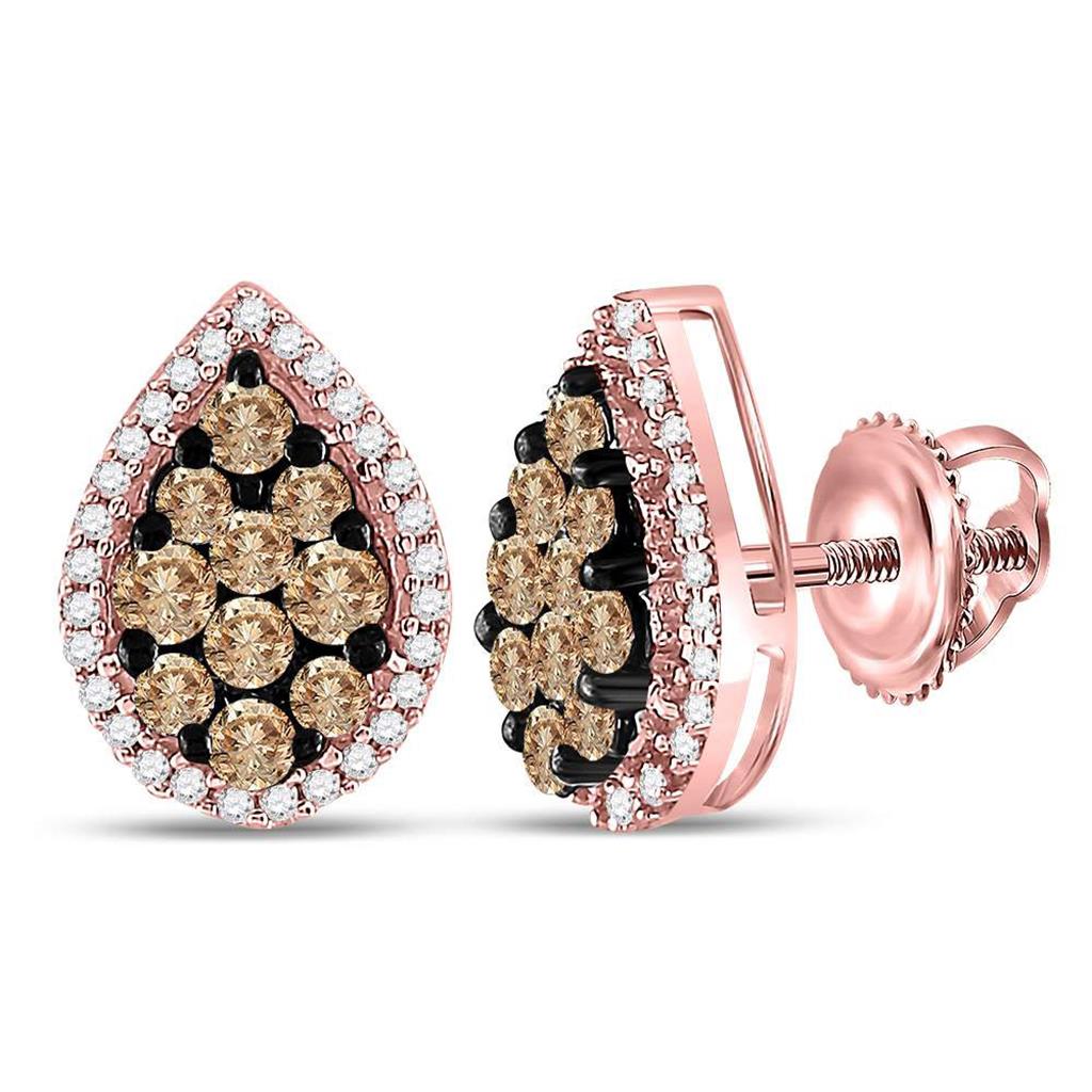 10k Rose Gold Brown Diamond Teardrop Cluster Earrings 1 Cttw