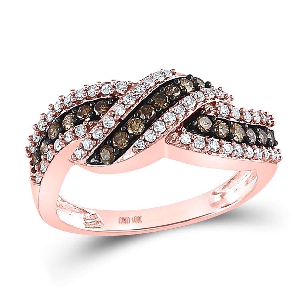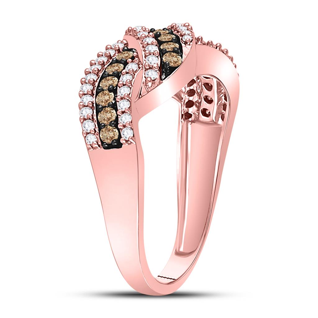 10k Rose Gold Round Brown Diamond Crossover Band Ring 3/4 Cttw