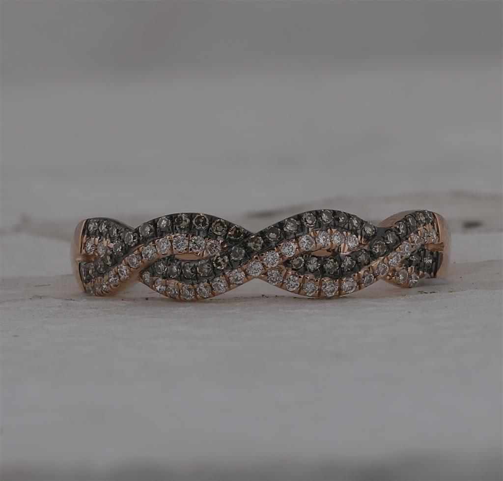 10k Rose Gold Round Brown Diamond Twist Band Ring 1/4 Cttw