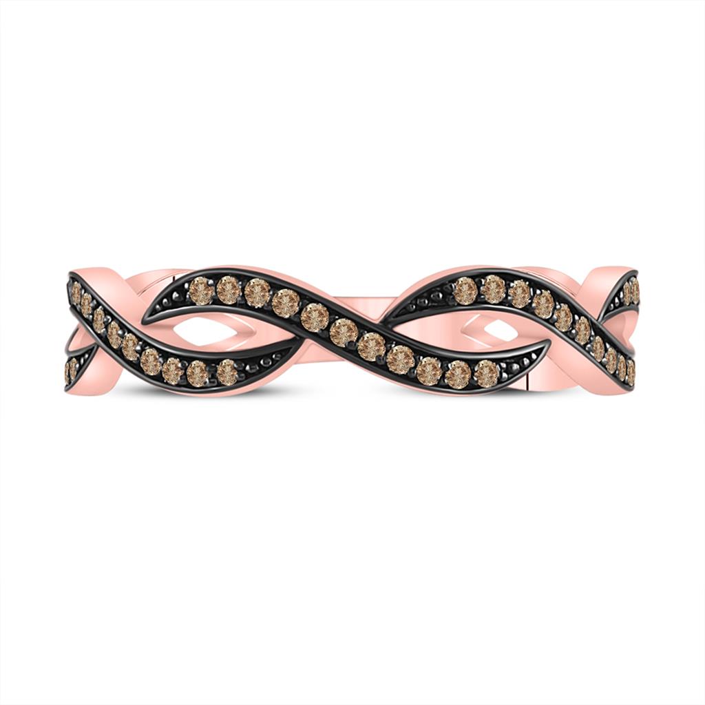 10k Rose Gold Round Brown Diamond Twist Band Ring 1/5 Cttw
