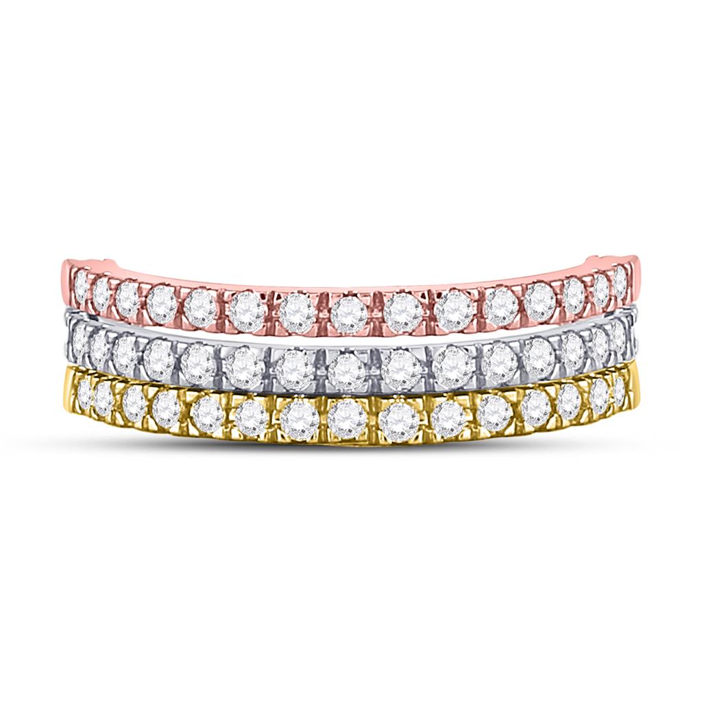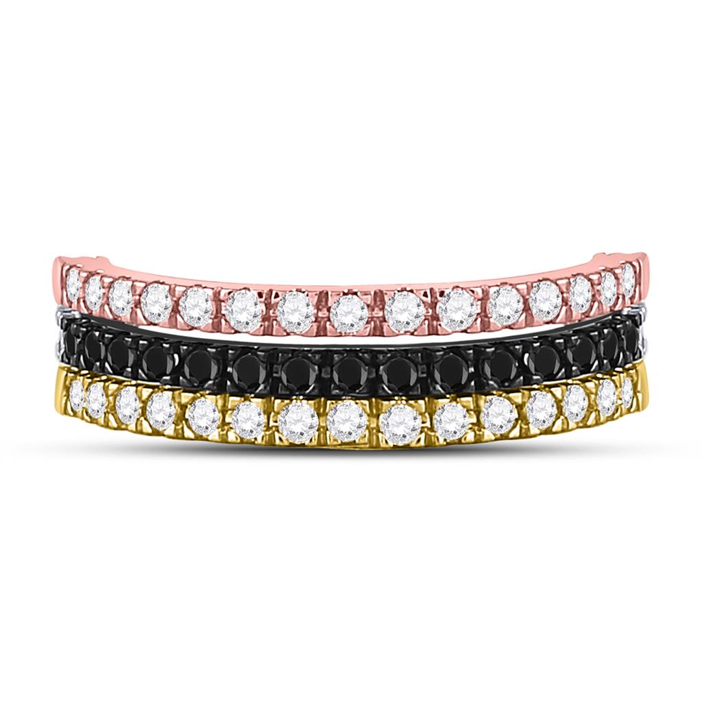 10k Tri-Tone Gold Round Black Diamond Convertible Band Ring 1 Cttw