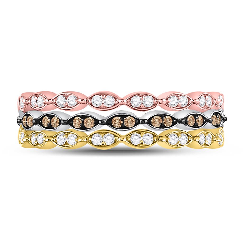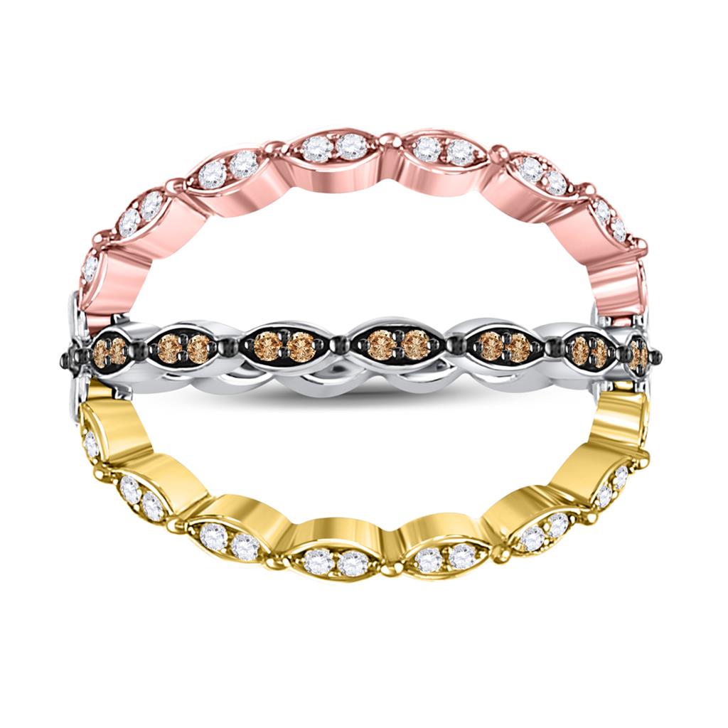 10k Tri-Tone Gold Round Brown Diamond Convertible Band Ring 3/8 Cttw