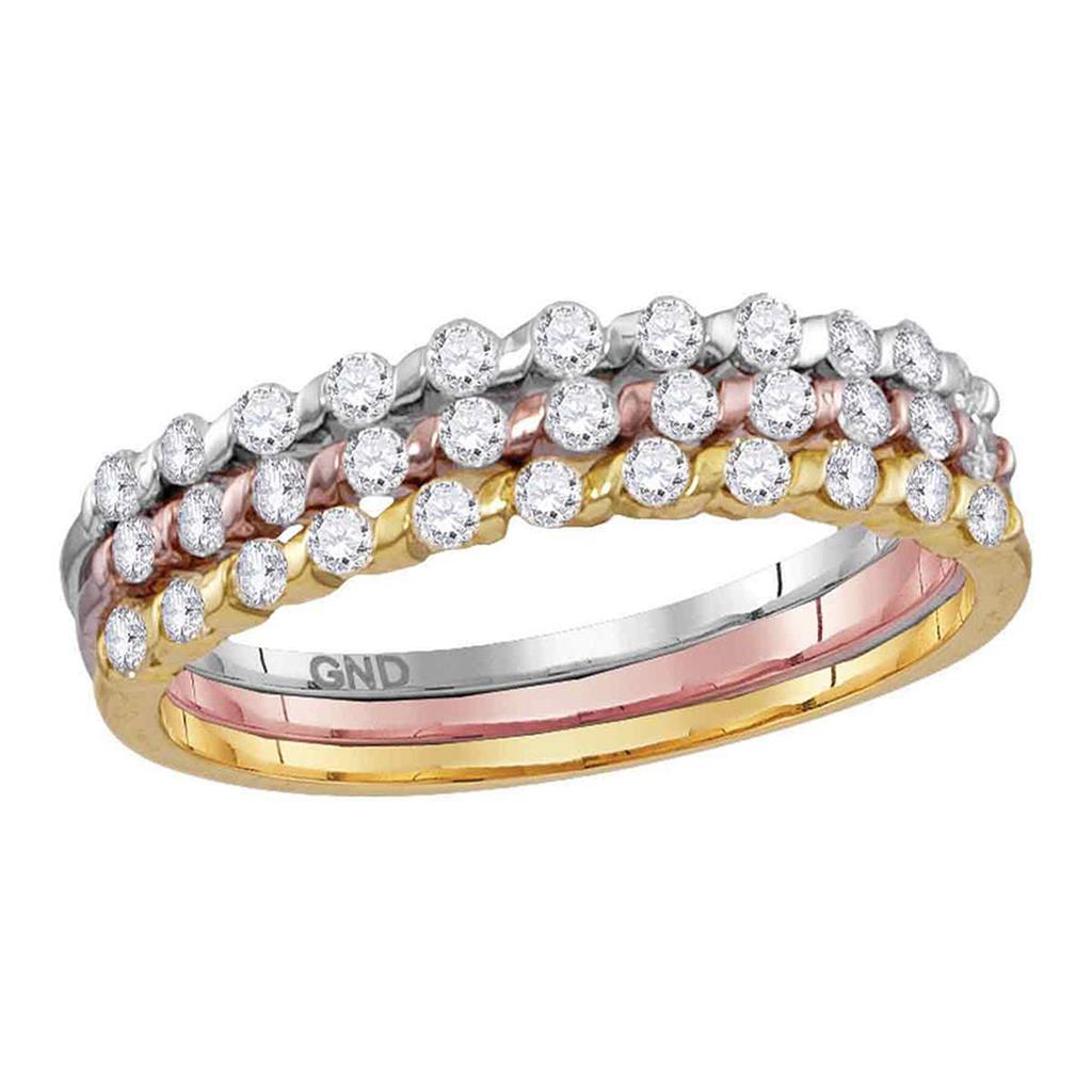 10k Tri-Tone Gold Round Diamond 3-Piece Stackable Band Ring 1/2 Cttw