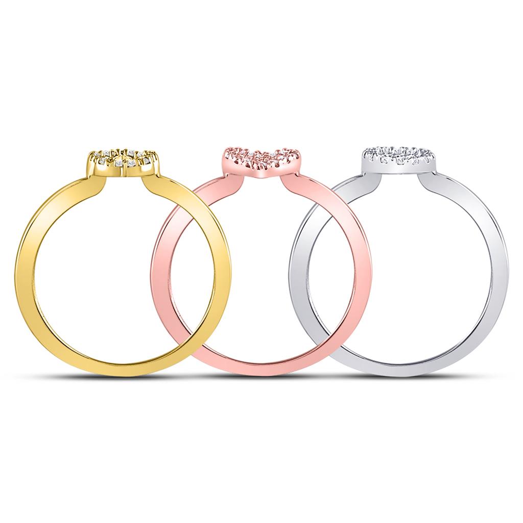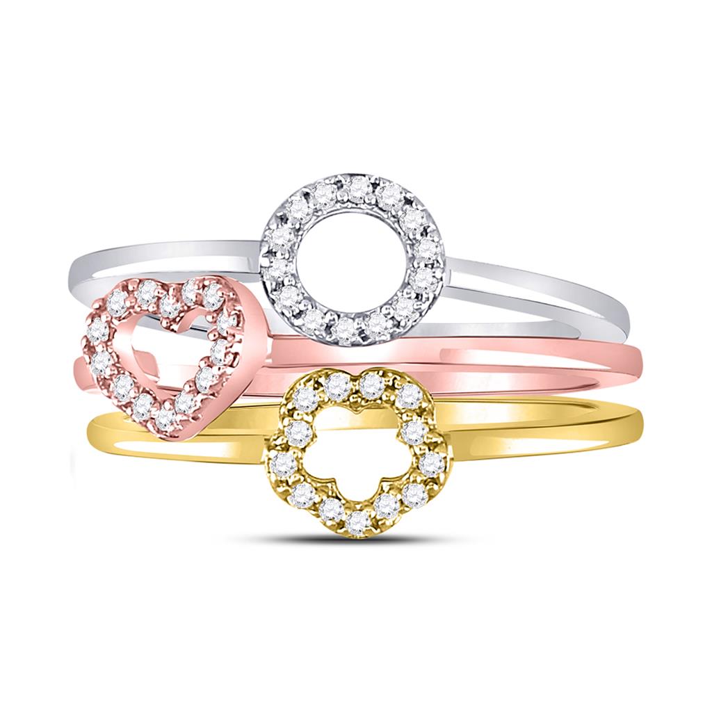 10k Tri-Tone Gold Round Diamond 3-Piece Stackable Band Ring 1/5 Cttw