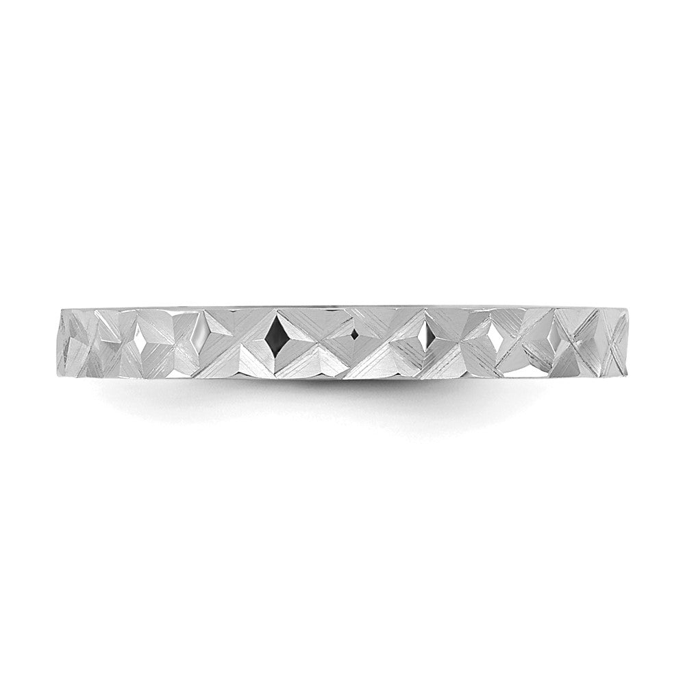 The 10K White Gold Diamond-Cut Ring for children is a darling piece crafted with precision. This band features a 2mm width that fits comfortably on a child's finger without overwhelming it. Made from 10K white gold with a rhodium polish, this ring sparkles with a diamond-cut texture. The flat band has a smooth, polished finish and a simple yet stylish look. Ideal for young ones, this ring adds a touch of elegance to a child's jewelry collection. Celebrate special moments with the 10K White Gold Diamond-Cut Ring's charm and youthful shine.