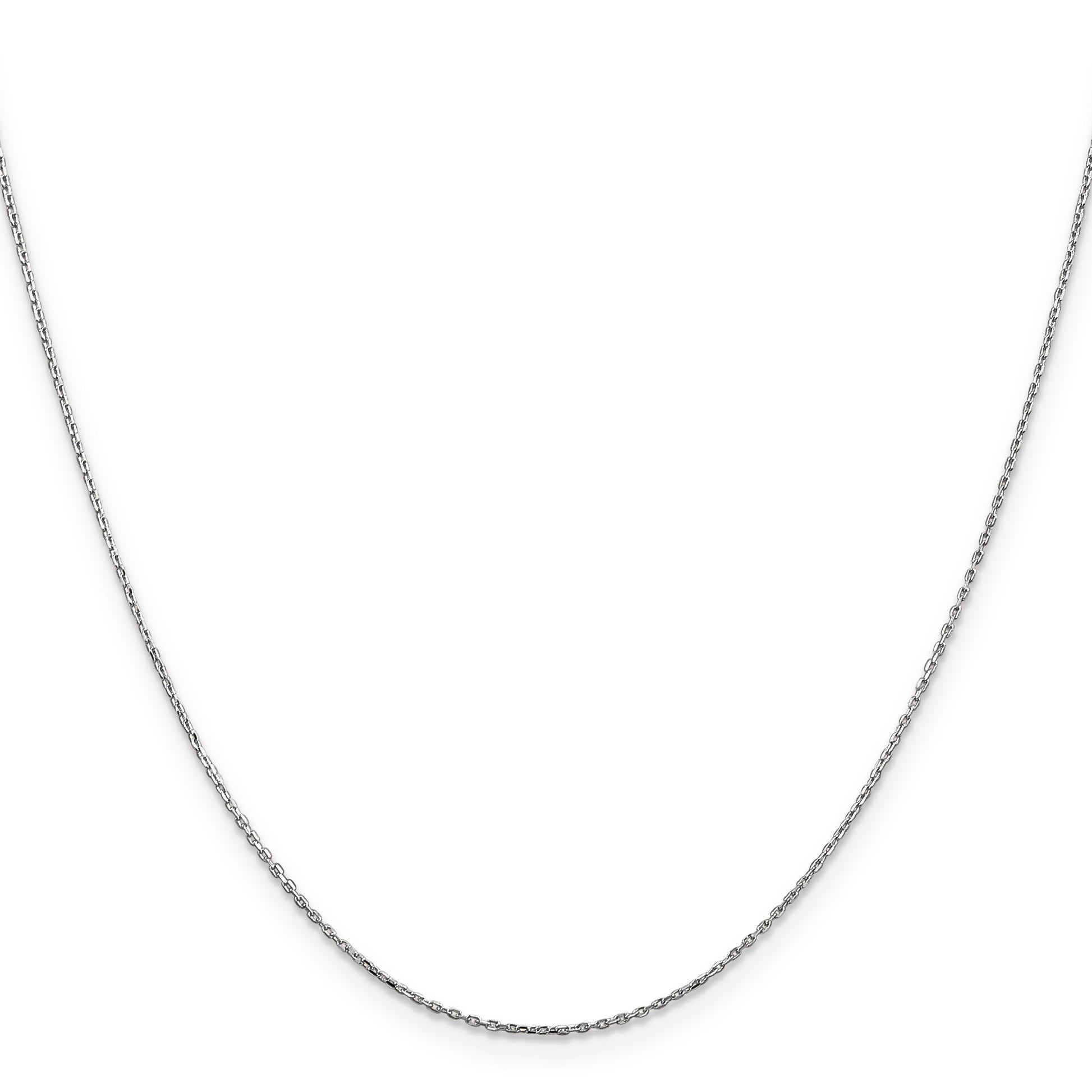 Add a sleek touch to your look with the 10K White Gold .8mm D/C Cable With Lobster Clasp Chain. Crafted from pure 10K white gold, this necklace shines with a polished finish and a diamond-cut texture that catches the light. The slim 0.8mm cable chain measures 16 inches, making it perfect for layered styles or wear alone. Its sturdy lobster clasp ensures secure wear, while the rhodium plating helps maintain its bright finish. With a lifetime guarantee, the 10K White Gold .8mm D/C Cable With Lobster Clasp Chain offers a simple yet elegant way to elevate any outfit.
