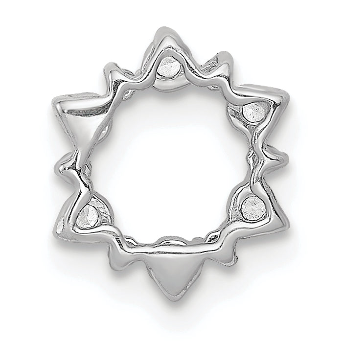 Introducing the stunning 10K White Gold Diamond Fancy Circle Chain Slide, a dazzling addition to your jewelry collection. Crafted with 10K white gold, this piece gleams with a polished finish and is enhanced with rhodium plating for a brilliant shine. The pendant features a unique circle chain design, setting the stage for carefully set diamonds that catch every glint of light. Though it won't accommodate an Omega chain, its standalone charm promises timeless elegance. Elevate any outfit with the 10K White Gold Diamond Fancy Circle Chain Slide, perfect for those moments you want to shine.
