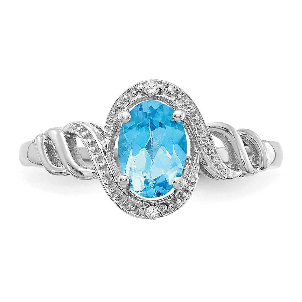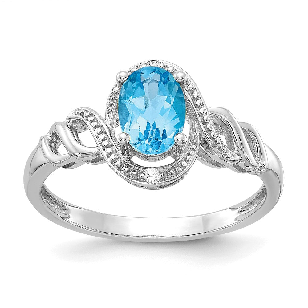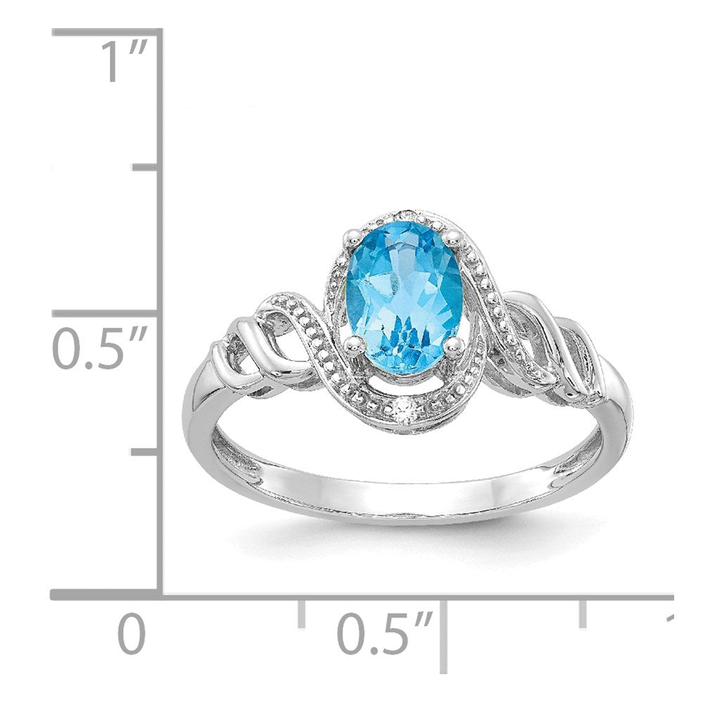 14K White Gold Light Swiss Blue Topaz and Real Diamond Ring