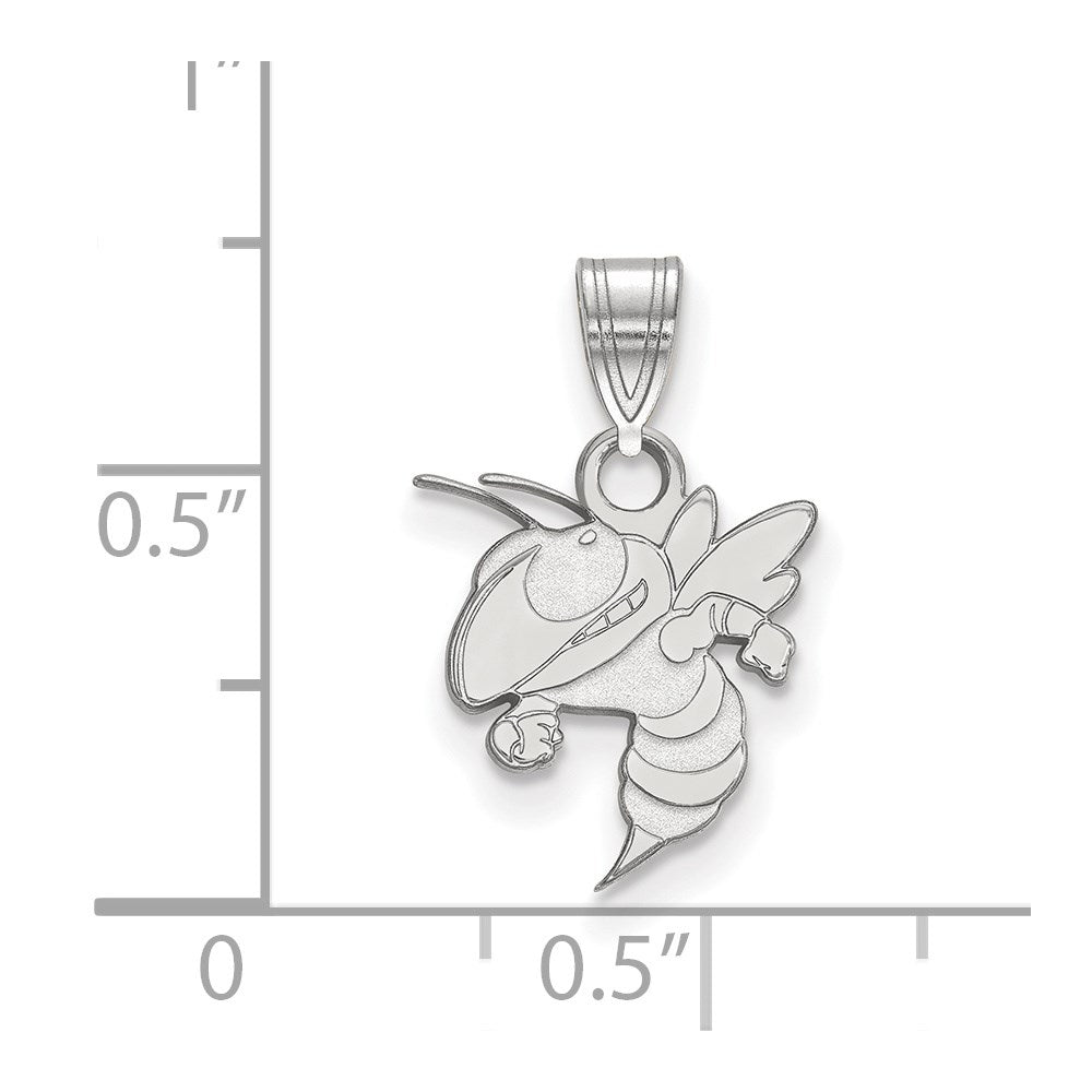 Show your school spirit with the LogoArt Georgia Tech Yellow Jacket pendant, crafted in shiny 10K white gold. This small charm measures 18 mm long and features a detailed yellow jacket design that highlights your pride. Finished with a polished look and rhodium plating, it adds a sleek touch to any chain. The pendant is laser-cut for precision and displays the Georgia Tech logo proudly. Its compact size makes it perfect for everyday wear, celebrating your connection to Georgia Tech. The LogoArt Georgia Tech Yellow Jacket pendant combines quality and style to showcase your school pride.