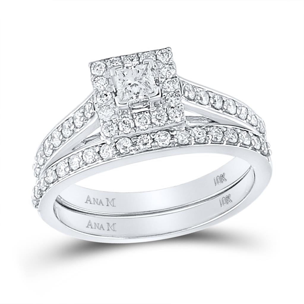14k White Gold Princess Diamond Bridal Wedding Ring Set 7/8 Cttw (Certified)