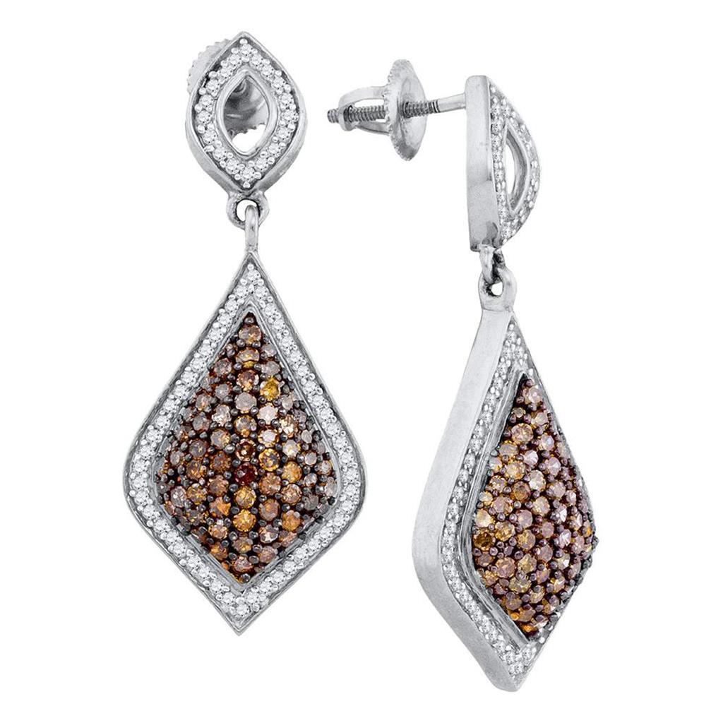 14k White Gold Round Brown Diamond Teardrop Dangle Earrings 2-1/5 Cttw