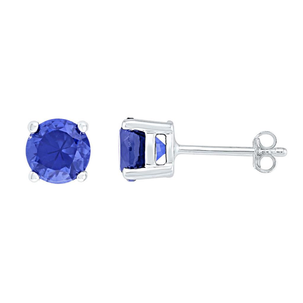 14k White Gold Round Created Blue Sapphire Solitaire Earrings 2 Cttw