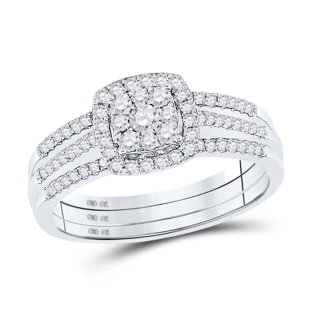 14k White Gold Round Diamond 3-Piece Bridal Wedding Ring Set 1/2 Cttw