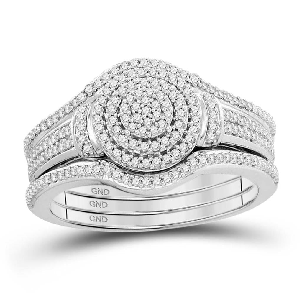 14k White Gold Round Diamond 3-Piece Cluster Bridal Wedding Ring Set 1/3 Cttw