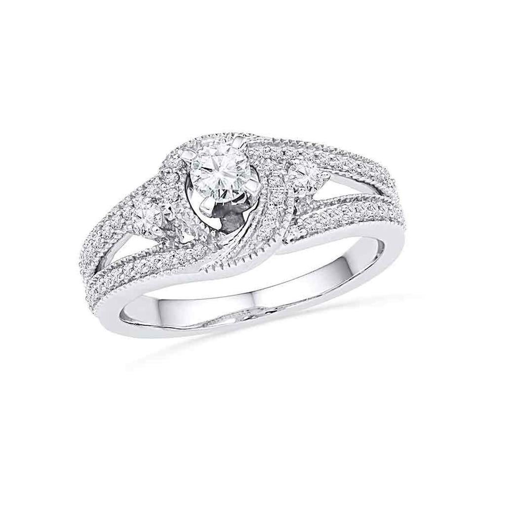 14k White Gold Round Diamond Bridal Wedding Engagement Anniversary Ring 1/2 Cttw