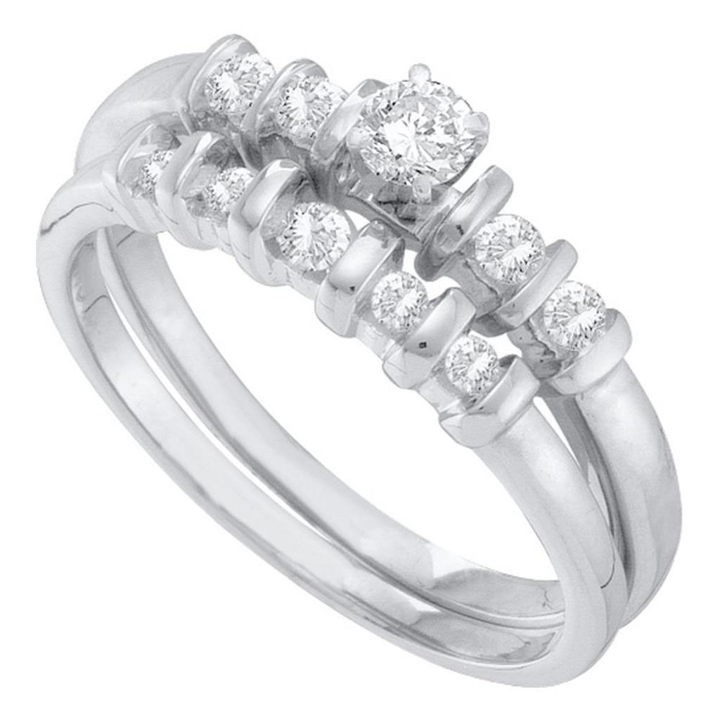 14k White Gold Round Diamond Bridal Wedding Ring Set 3/8 Cttw