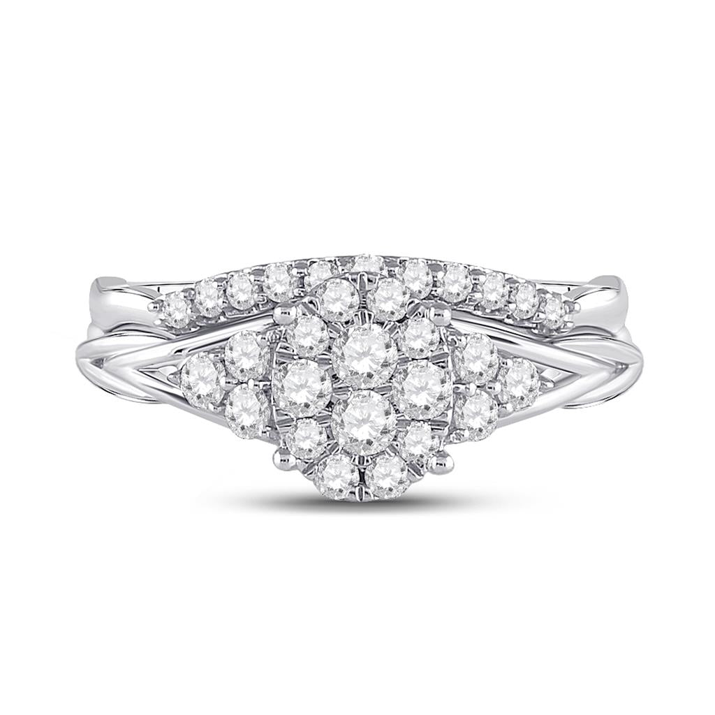 14k White Gold Round Diamond Bridal Wedding Ring Set 5/8 Cttw