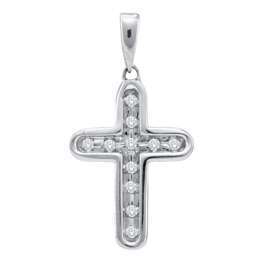 14k White Gold Round Diamond Cross Pendant 1/10 Cttw