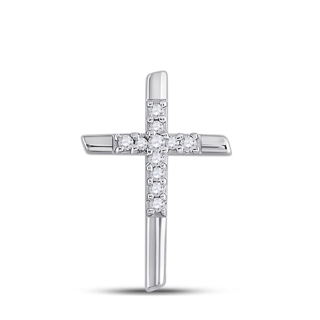 14k White Gold Round Diamond Cross Pendant 1/12 Cttw