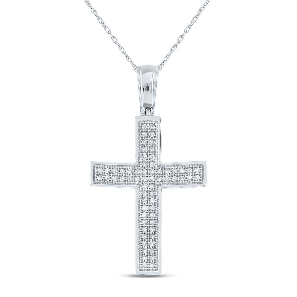 14k White Gold Round Diamond Cross Pendant 1/5 Cttw