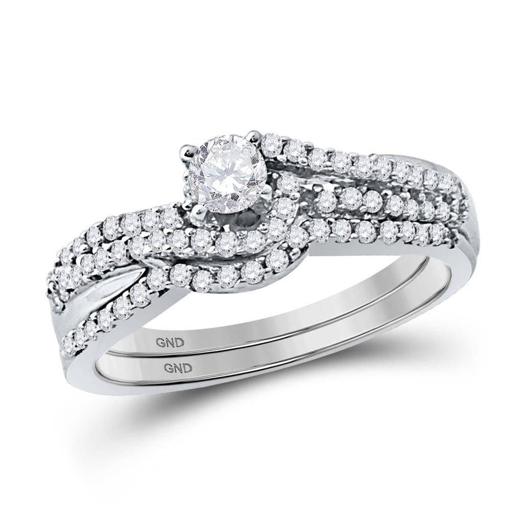 14k White Gold Round Diamond Crossover Bridal Wedding Ring Set 1/2 Cttw