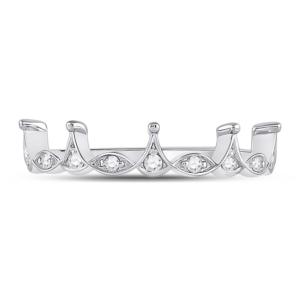 14k White Gold Round Diamond Crown Stackable Band Ring 1/5 Cttw