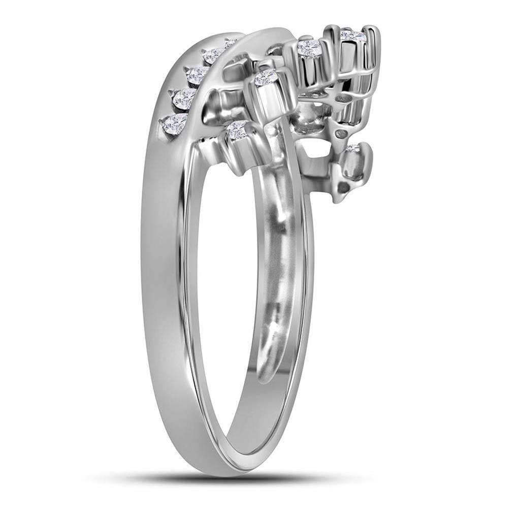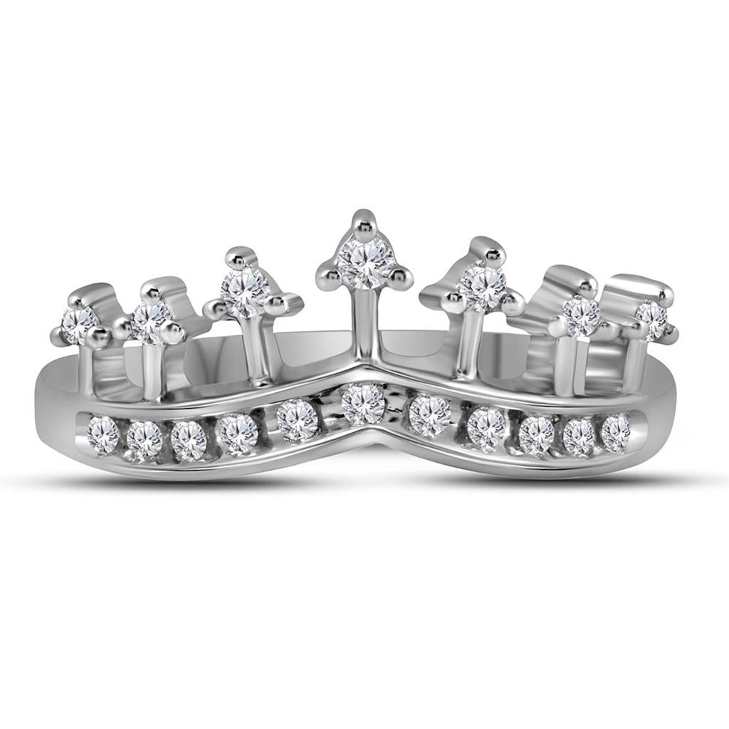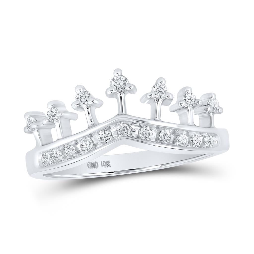 14k White Gold Round Diamond Crown Tiara Band Ring 1/5 Cttw