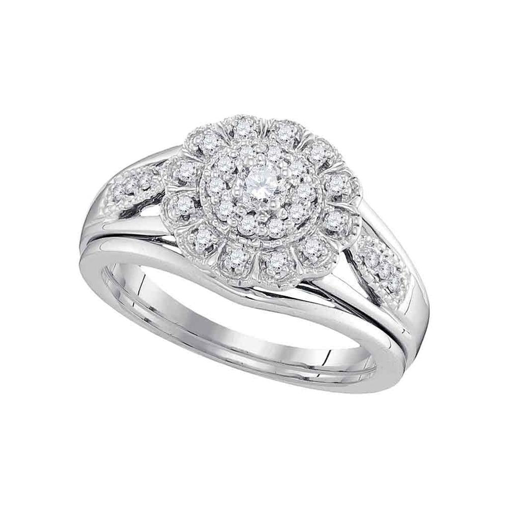 14k White Gold Round Diamond Floral Halo Bridal Wedding Ring Set 1/3 Cttw