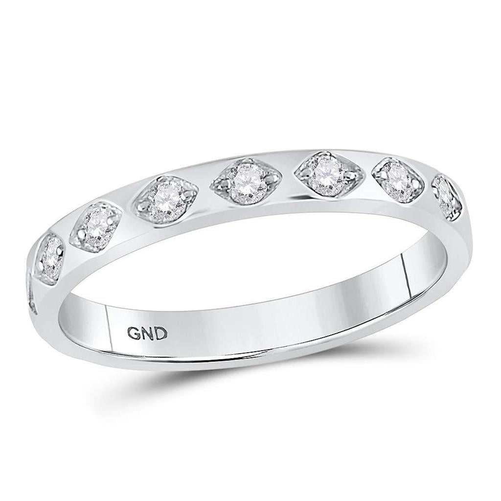14k White Gold Round Diamond Flush Diamond Shape Band Ring 1/5 Cttw