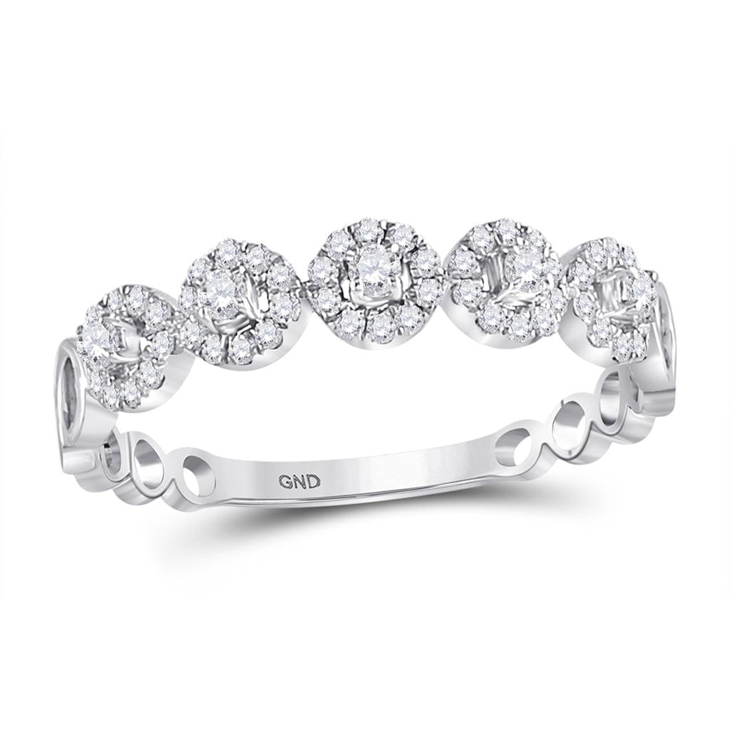 14k White Gold Round Diamond Halo Solitaire Stackable Band Ring 1/3 Cttw