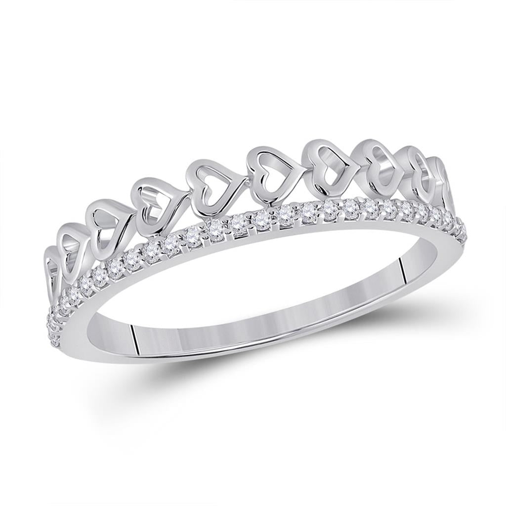 14k White Gold Round Diamond Heart Band Ring 1/6 Cttw