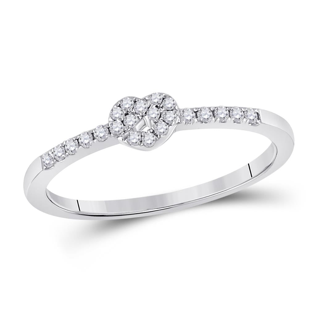 14k White Gold Round Diamond Heart Stackable Band Ring 1/8 Cttw