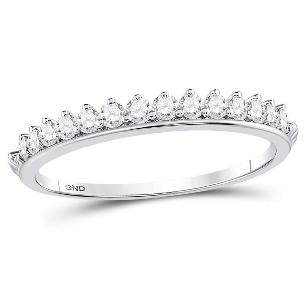 14k White Gold Round Diamond Modern Style Stackable Band Ring 1/3 Cttw