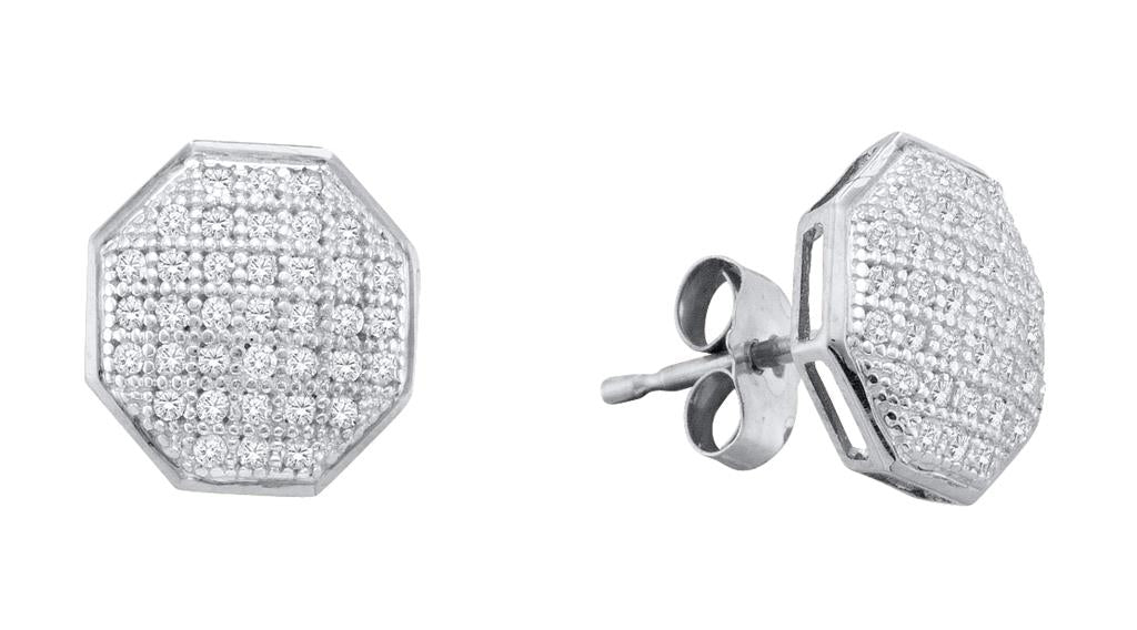 14k White Gold Round Diamond Octagon Cluster Earrings 1/5 Cttw