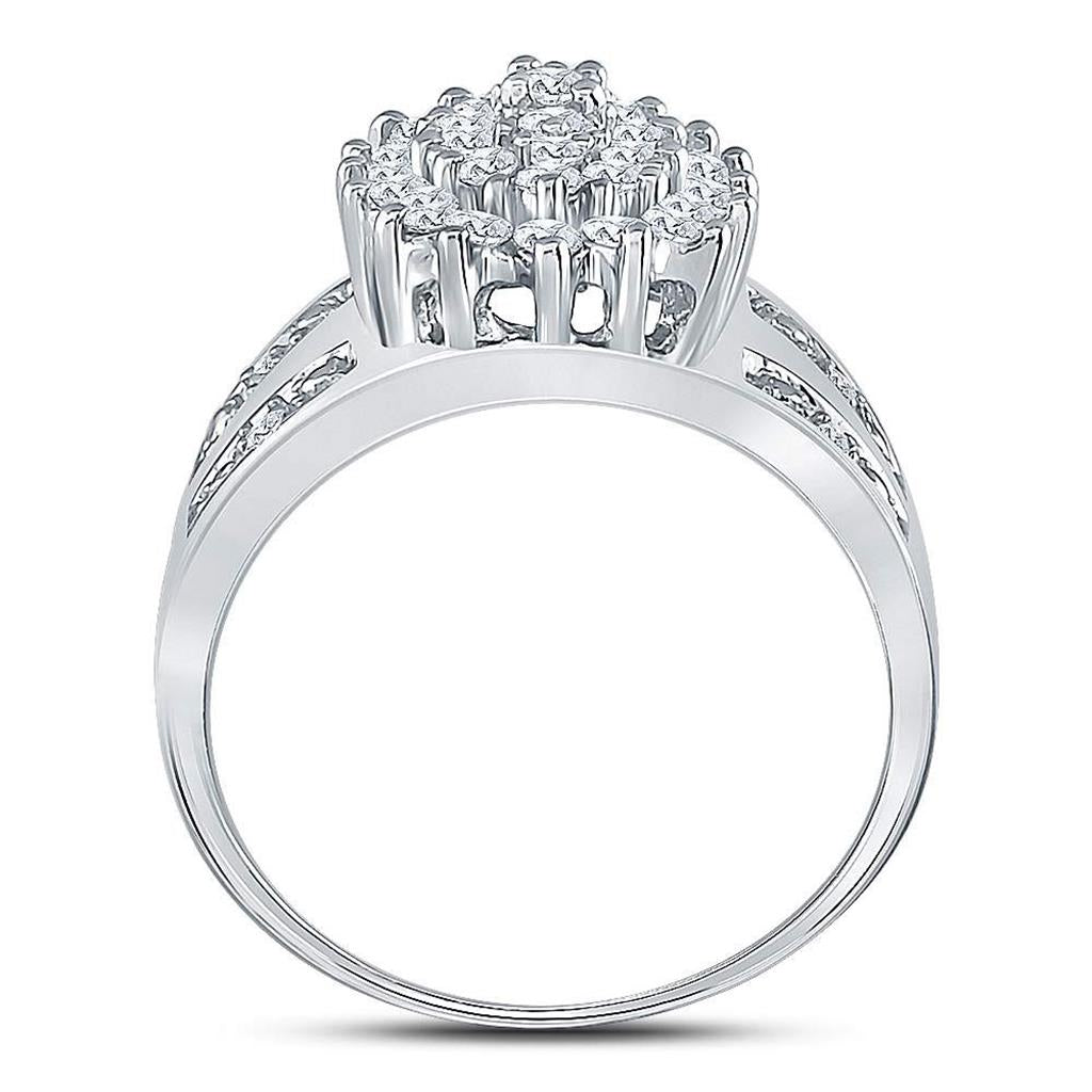 14k White Gold Round Diamond Oval Cluster Ring 1/2 Cttw