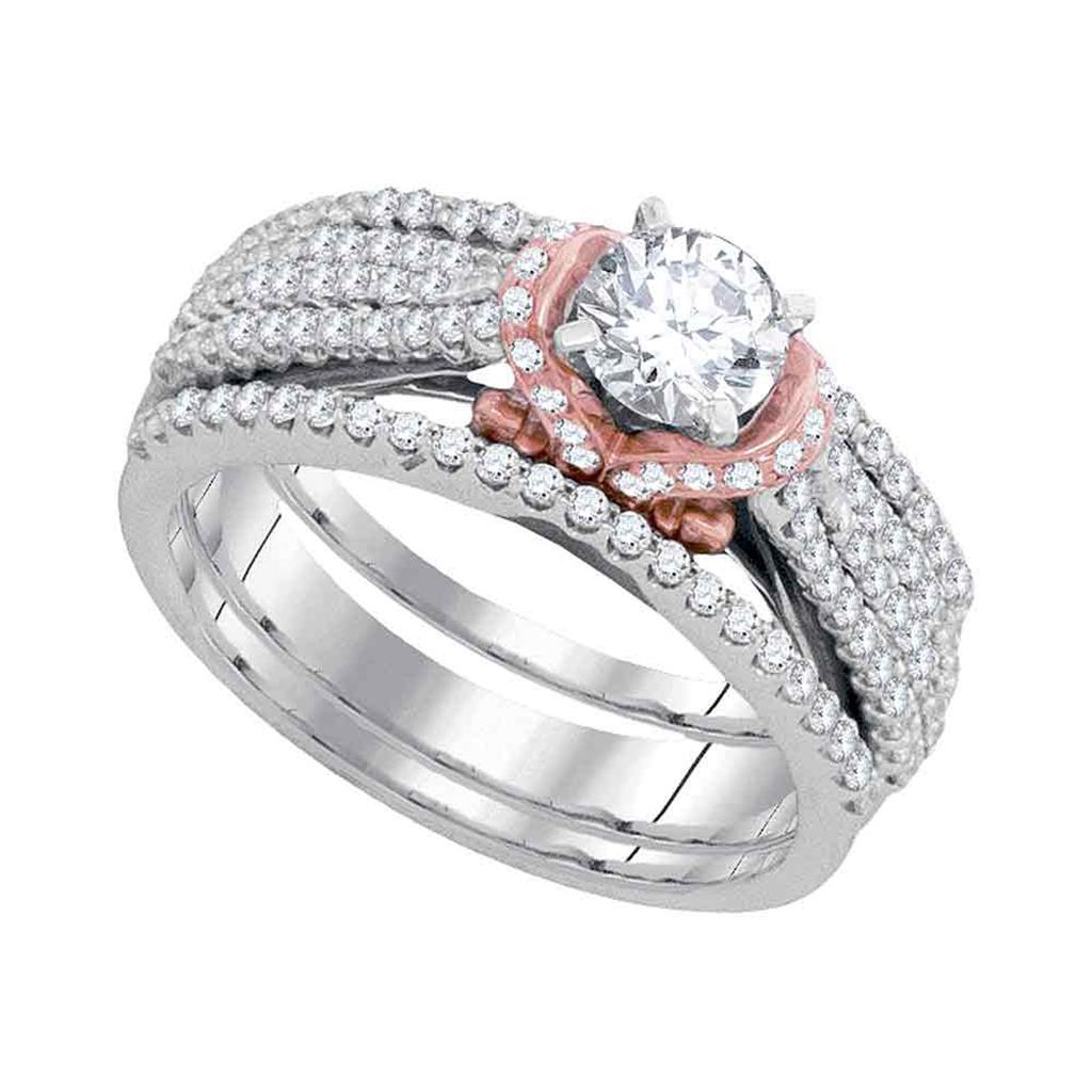 14k White Gold Round Diamond Rose-tone Bridal Wedding Ring Set 1 Cttw