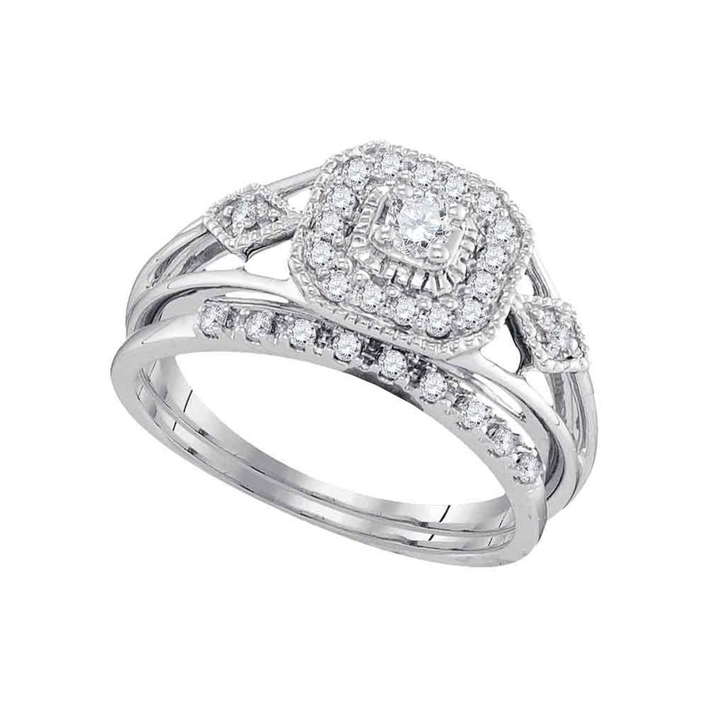 14k White Gold Round Diamond Square Bridal Wedding Ring Set 1/3 Cttw