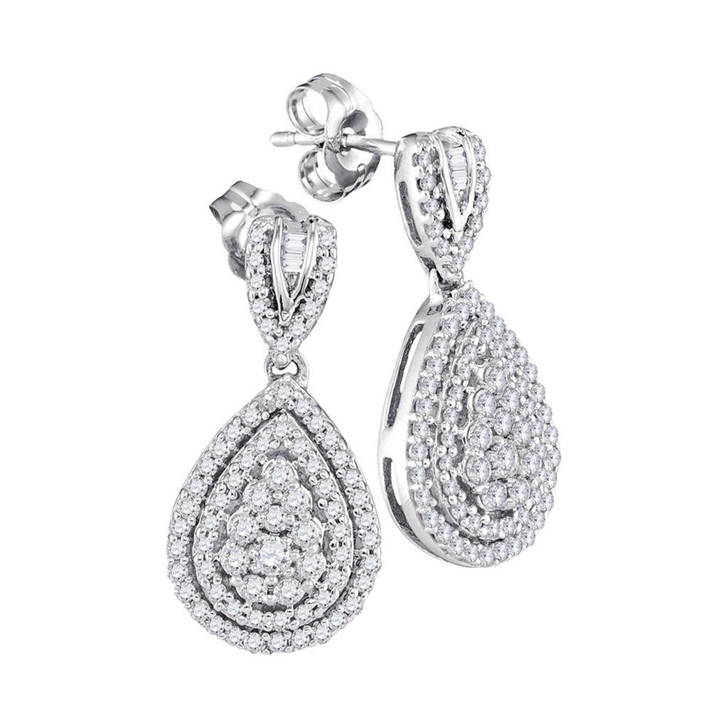 14k White Gold Round Diamond Teardrop Dangle Earrings 7/8 Cttw