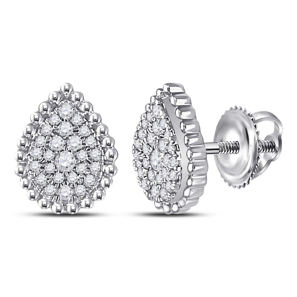 14k White Gold Round Diamond Teardrop Earrings 1/4 Cttw