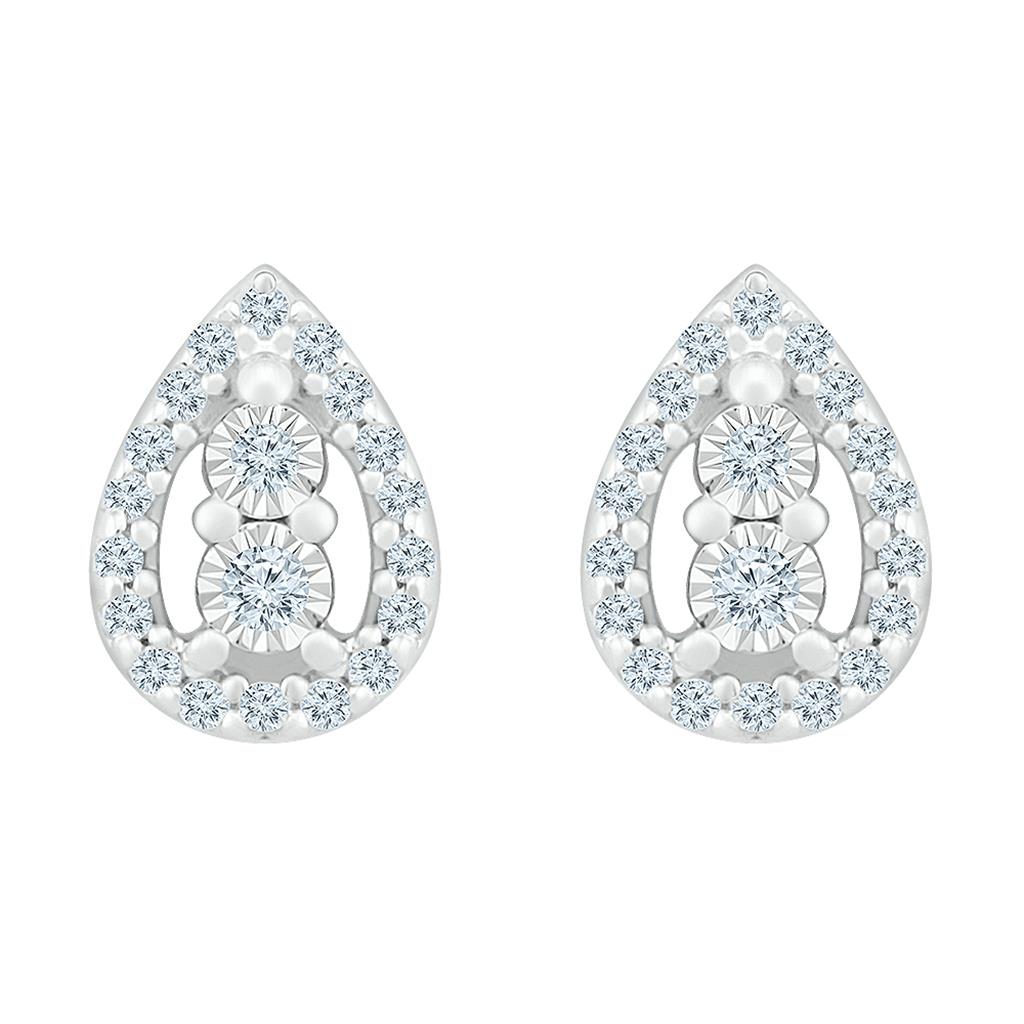 14k White Gold Round Diamond Teardrop Earrings 1/8 Cttw