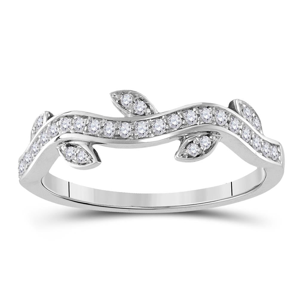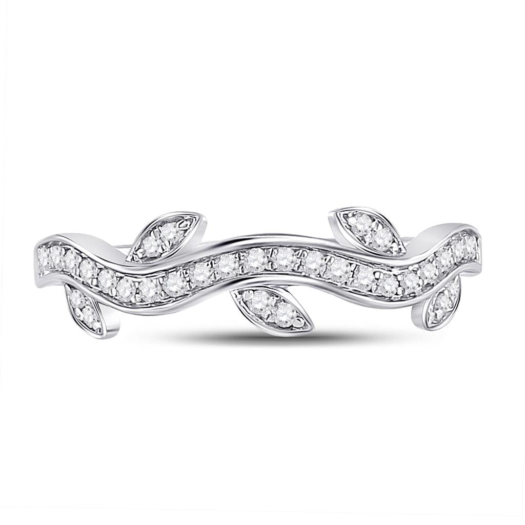 14k White Gold Round Diamond Vine Floral Stackable Band Ring 1/6 Cttw