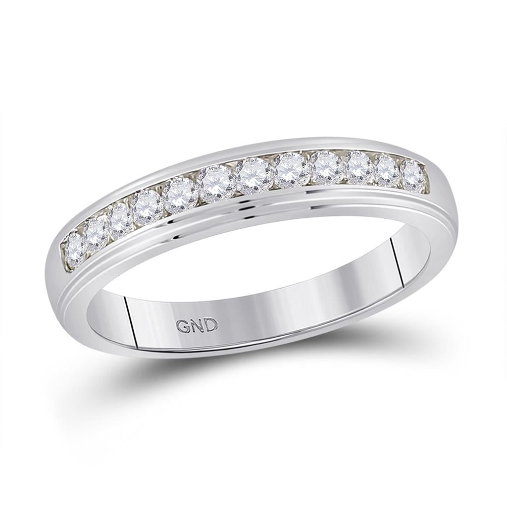 14k White Gold Round Diamond Wedding Channel-Set Band Ring 1/2 Ctw