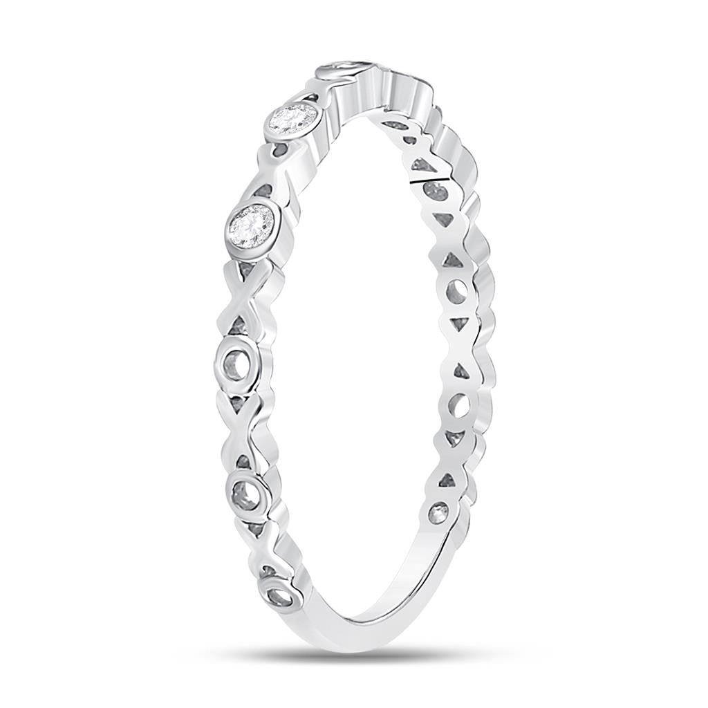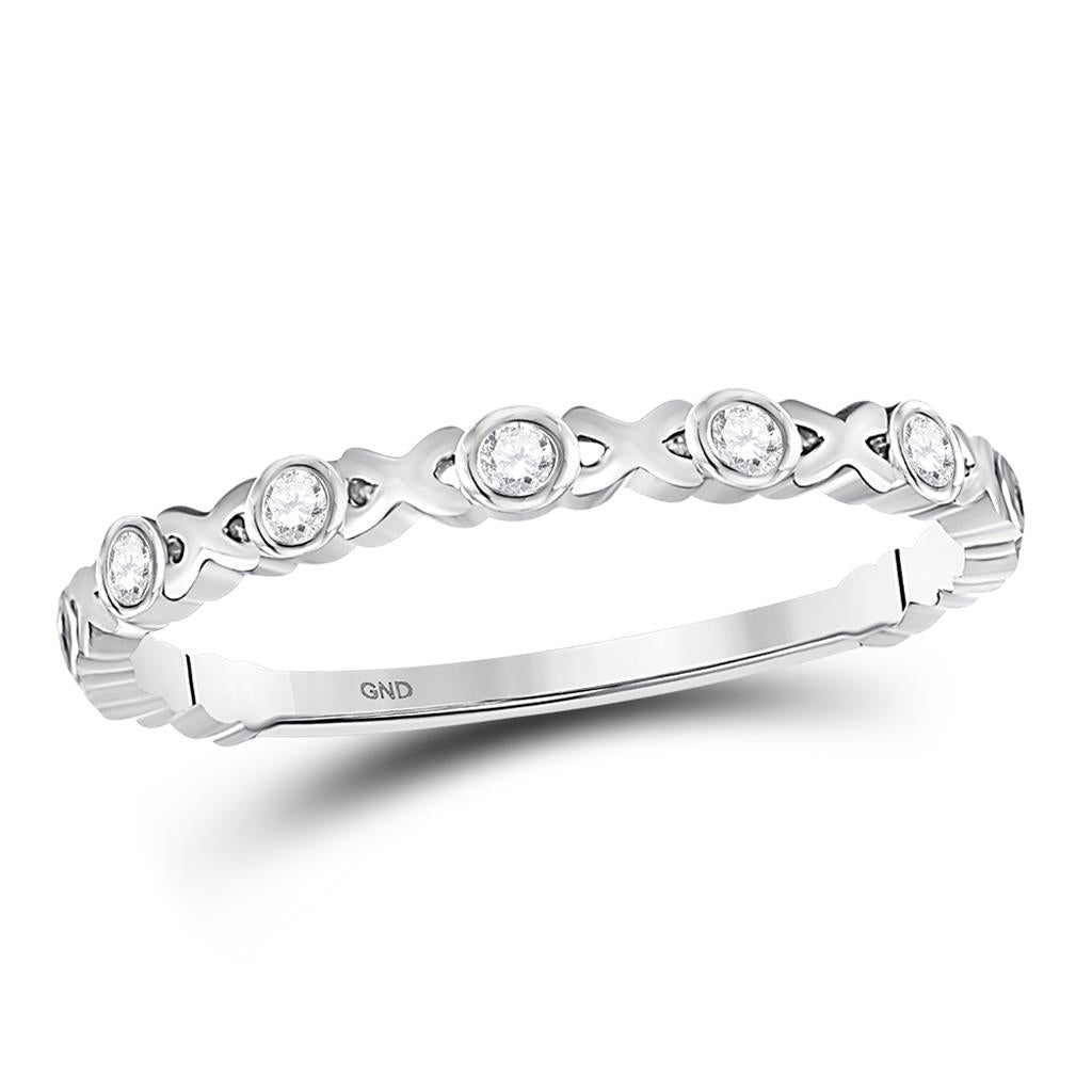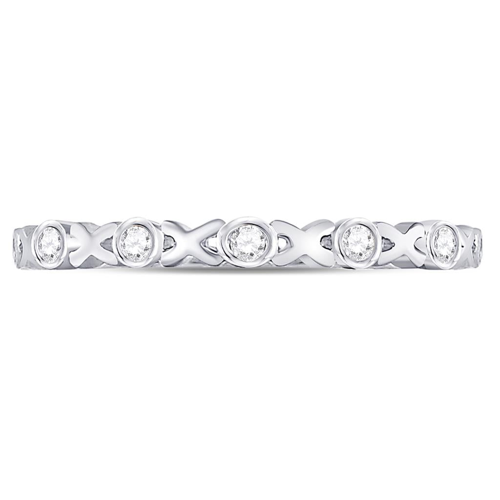 14k White Gold Round Diamond XOXO Love Stackable Band Ring 1/12 Cttw