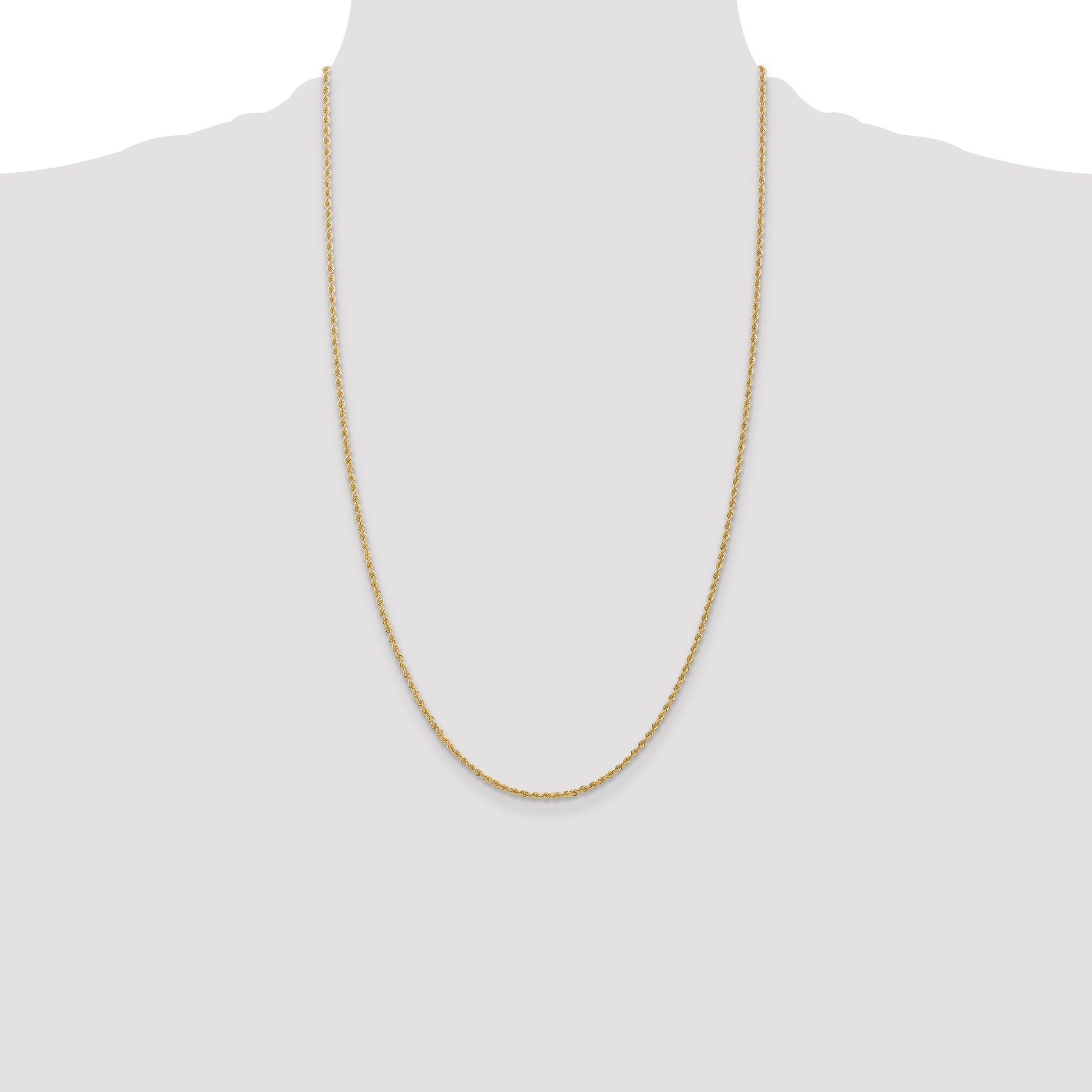 This 10K Yellow Gold 1.50mm Regular Rope Chain radiates timeless elegance. Made from polished 10K gold, this 26-inch chain showcases a classic rope design that complements any style. Each link reflects light beautifully, adding a subtle charm to your outfit. The secure lobster clasp ensures it stays in place, whether dressed up or down. Handmade with care, this chain exudes luxury and durability. A must-have for any jewelry collection, the 10K Yellow Gold 1.50mm Regular Rope Chain is perfect for daily wear or special occasions.