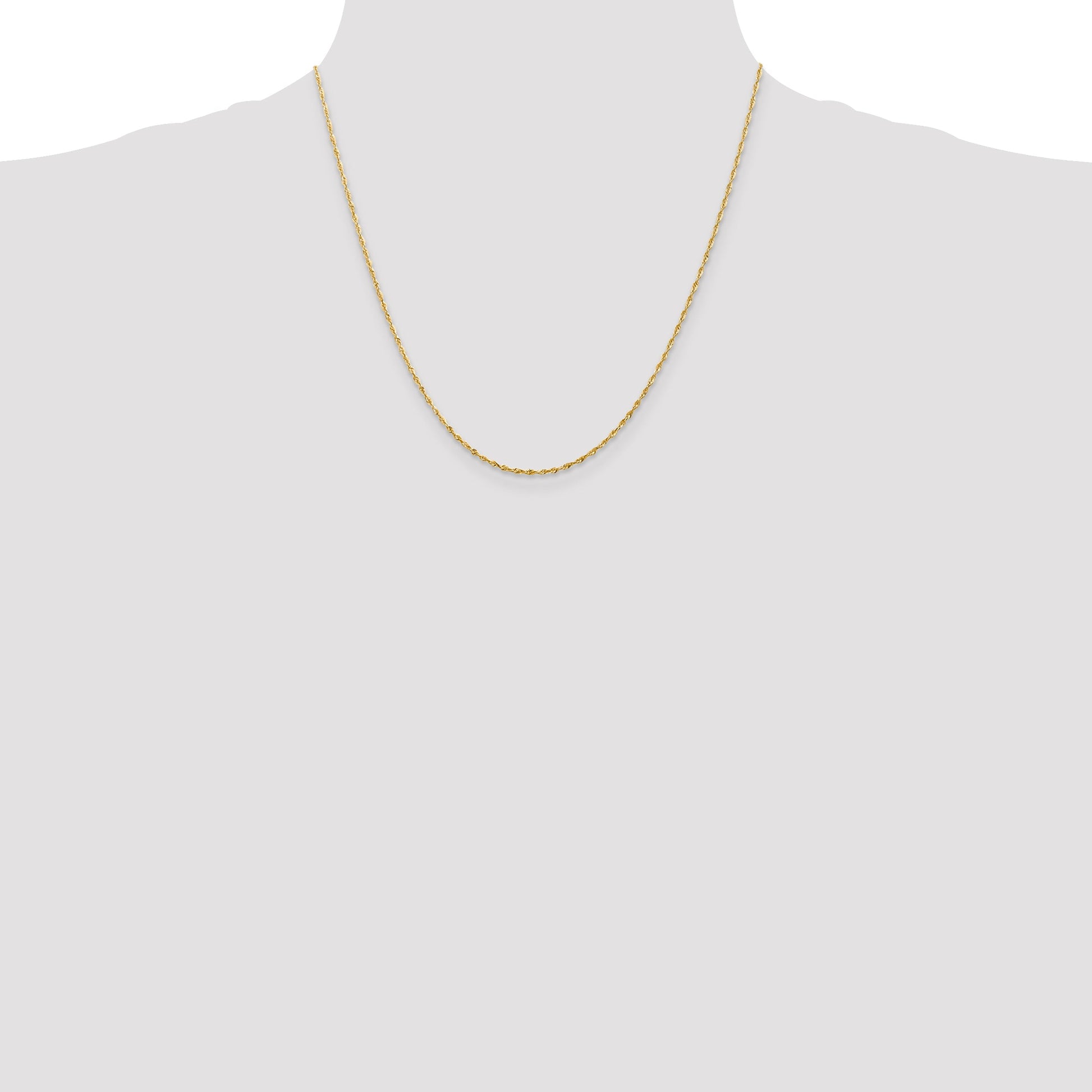 The 10K Yellow Gold 1.5mm Extra-Light D/C Rope Chain is a dazzling piece of fine jewelry. Made from 10K yellow gold, this necklace features a sleek, polished finish. The rope chain design stands out and adds a touch of elegance. With a width of 1.5mm and a length of 20 inches, it offers a perfect balance of style and comfort. The lobster clasp ensures a secure fit. Its lightweight, diamond-cut texture adds sparkle to your everyday look. Invest in the 10K Yellow Gold 1.5mm Extra-Light D/C Rope Chain for timeless elegance.