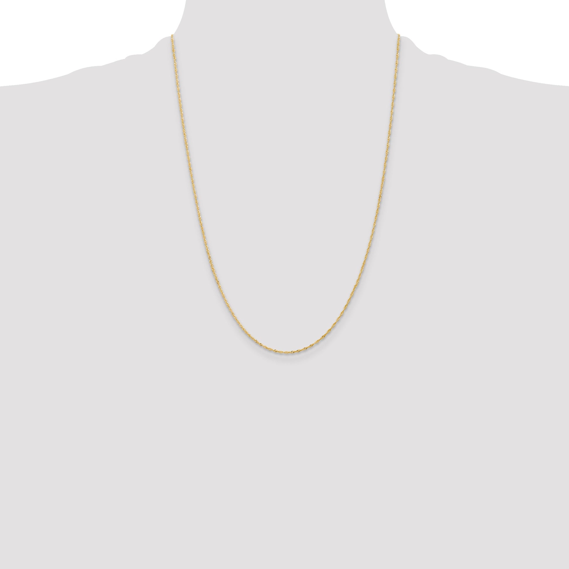 The 10K Yellow Gold 1 mm Singapore Chain is a sleek and stylish piece made from solid gold. Measuring 24 inches long, it offers a perfect fit for most, with a polished finish that adds shine and charm. The chain features a delicate 1 mm width, giving it a graceful look, while the spring ring clasp ensures a secure fit. Nickel-free and unisex, the 10K Yellow Gold 1 mm Singapore Chain is crafted with care and built to last. Whether layered or worn alone, this chain makes a great addition to any jewelry collection.