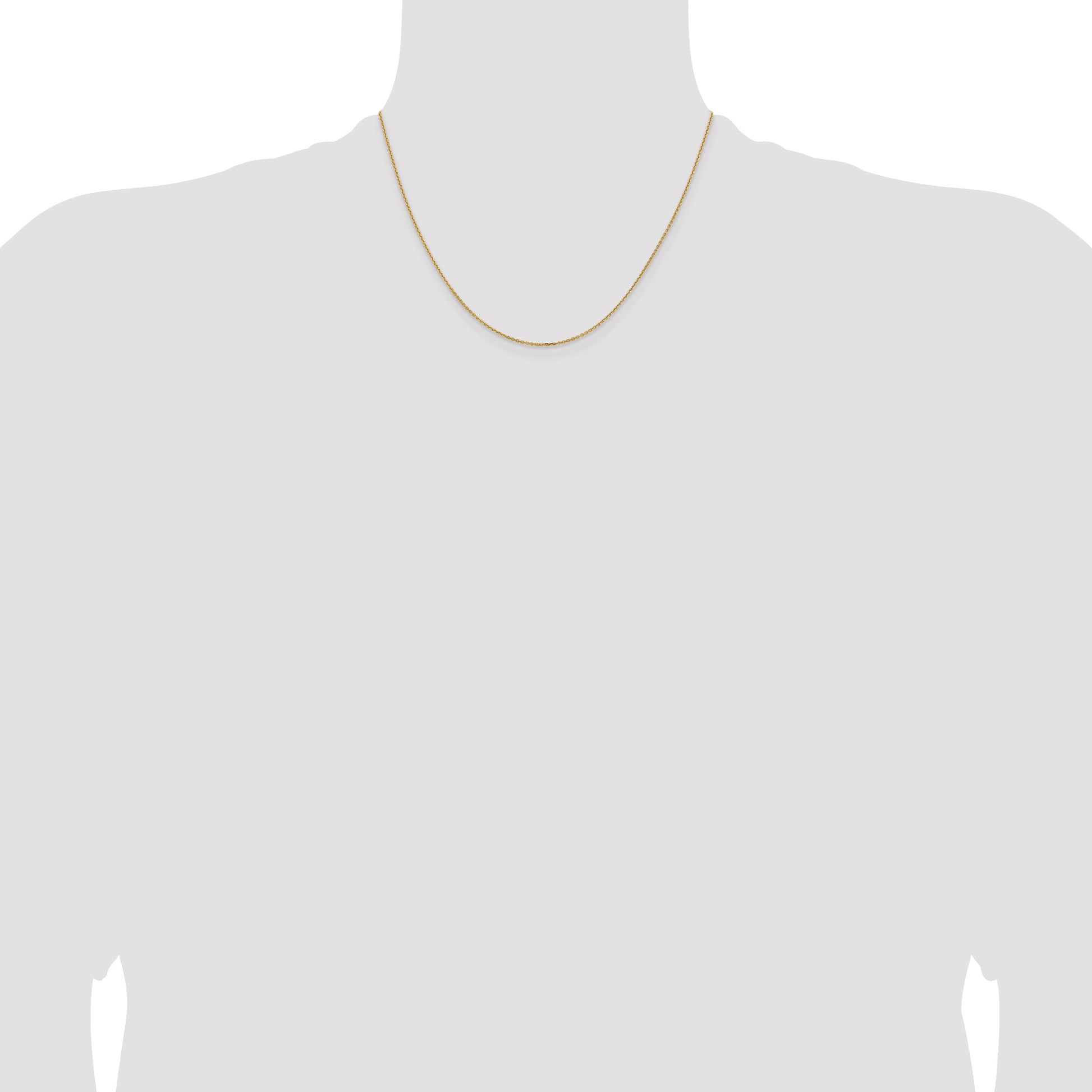 The 10K Yellow Gold 1.05mm D/C Cable Chain is a simple yet stylish necklace perfect for everyday wear. Made from polished 10K gold, it features a durable lobster clasp and a diamond-cut finish that adds a subtle shine. Measuring 18 inches long with a slim 1.05mm width, it hooks easily around your neck and sits comfortably. The quality craftsmanship ensures this chain lasts, backed by a lifetime guarantee. Ideal for layering or wearing alone, the 10K Yellow Gold 1.05mm D/C Cable Chain boosts your style with a sleek touch of gold.